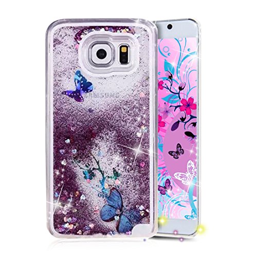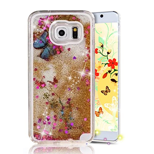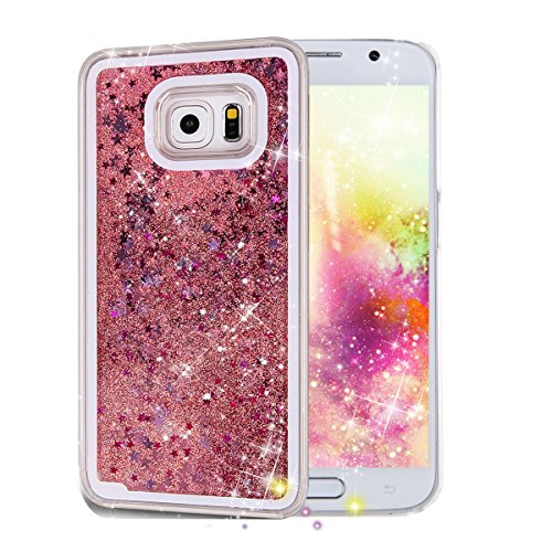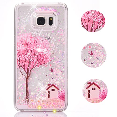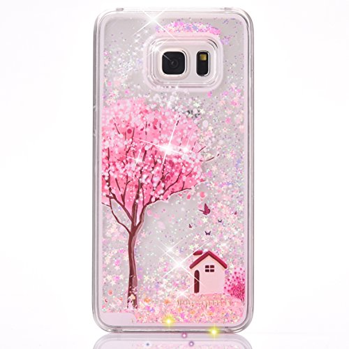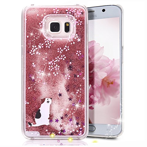 S6 Edge Case,S6 Edge New Cool Cute Case,Crazy Panda® 3D Hard Shell Liquid Glitter Sparkle Stars Hard Case Cover for Samsung Galaxy S6 Edge Colorful Painting - Sakura