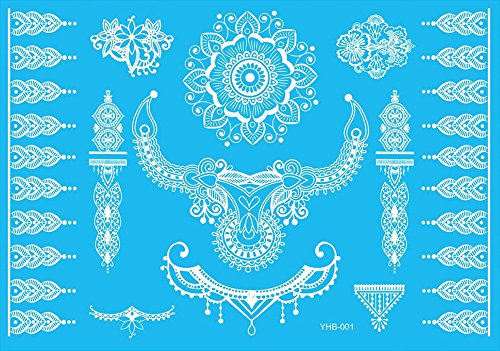 6 Sheet White Temporary Tattoos & Boho Designs Temporary Jewelry Tattoo for Body G/3W