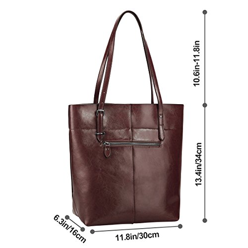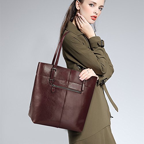 Product Description S-ZONE Vintage Genuine Leather Tote Shoulder Bag Handbag Big Large Capacity Brand:S-ZONE Department: Women Style: OL Style/Business Style/Casual Style This tote bag holds 11LB/5KG maximum Structures: External: 1. One back zipper pocket for holding frequently used items. 2. Handles are strengthen designed by metal nails and can be adjusted easily at one side. Internal: 2 big compartments, a central zippered pocket for IPAD, 1 side zippered pockets for wallets and another 2 pockets for keys/cards. Simple designed and roomy tote but not too big. Perfect gift idea! Material: Cow Split Leather with Coating Finish Cow Split leather is often coated to be various colors and pattern.It is moderate genuine leather,soft and anti-scratch.To creat a vintage and noble look,the leather is often polished and oiled,which makes the surface shinier and sleeker.The more you use,the more retrospective it will be.It may have natural odor at first,but the smell will fade awayafter a couple days' airing out. Cow split leather comes from a cow skin, genuine leather,and is harmless to human body and way too much durable than vinyl while vinyl is all made of chemical material and irritating to human.