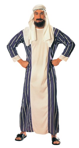 -. Binding : Apparel -. Brand : Rubie's -. Color : Tan -. Department : mens -. Feature : Sheik costume comes complete with headpiece and robe / Look to Rubies for matching jewelry, props and more / Why wait for Halloween - also great for stage, kids parties or one-on-one play time year round / One size fits most / Rubies Costume Company is a family owned business based in New York with more than 60 years of experience bringing children and adults the costumes and accessories they want to Halloween and year-round dress up -. Genre : Historical -. IsAdultProduct : 0 -. Label : Rubies Costumes - Apparel -. Manufacturer : Rubies Costumes - Apparel -. ProductGroup : Apparel -. ProductTypeName : ADULT_COSTUME -. Publisher : Rubies Costumes - Apparel -. Studio : Rubies Costumes - Apparel -. Title : Rubie's Costume Haunted House Collection Sheik Costume
