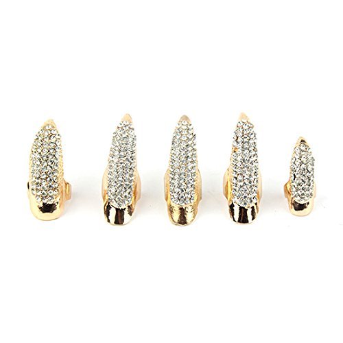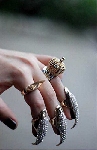 Product Feature: - Material: Alloy and rhinestone - Gender:unisex - Diameter of the 3 different sizes: Large (16mm) Medium(14mm) Small(11mm) - False Nail Clear Crystal Claw Paw Talon Finger Ring - Color: golden, black - Fashion style claw rings - Quantity: 5pcs - 3 large, 1 medium, 1 small , 10pcs - 6 large, 2 medium, 2 small - Simple and easy to use: clean the surface of your nails, then place it onto your finger rings - It is a healthy way of nail art, which does no harm to your nails and body ,nails can last for a long time, easy to take off or wear on as your require. - Note: Fixed ring size, not adjustable Package Content: 5x Finger ring (include :3 large, 1 medium, 1 small) 10x Finger ring (include :6 large, 2 medium, 2 small) Note: Please be reminded that due to lighting effects and monitor's brightness/contrast settings etc, the color tone of the website's photo and the actual item could be slightly different. All pictures are real stock photos