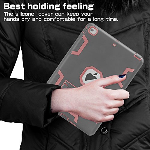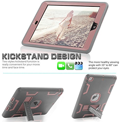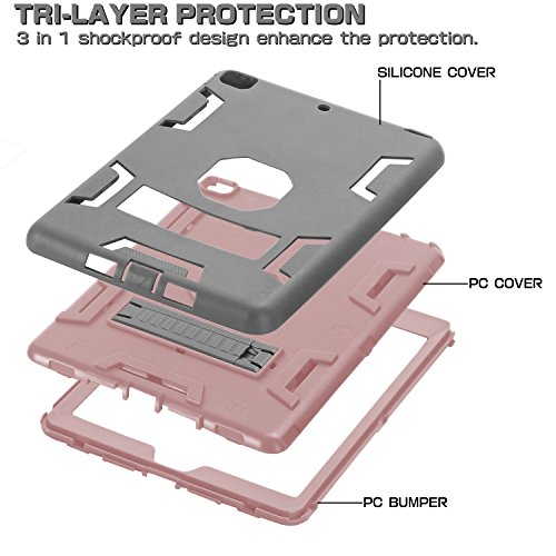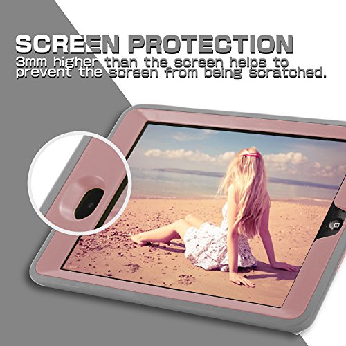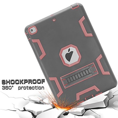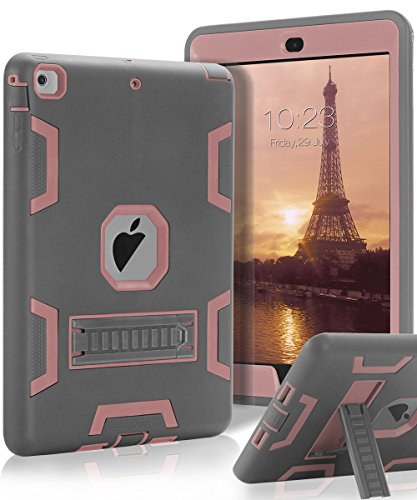 iPad Mini Case,iPad Mini 3/2/1 Case,SKYLMW 3 in 1 Heavy Duty Shockproof Anti-Scratch High Impact Resistant Protective Case Cover with Kickstand for iPad Mini 2/iPad Mini 3/iPad Mini 1,Grey/Rose Gold