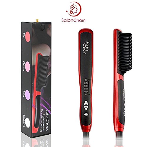 SalonChain Hair Straightening Brush 30s Instant Heat 60s Quick Styling Hair Straightener Anion Hair Care Anti Scald US Plug (Red)