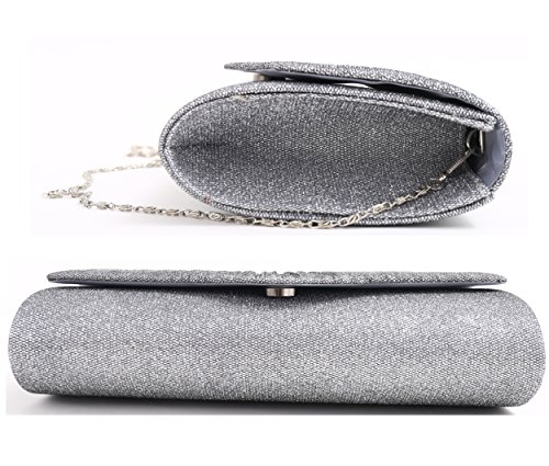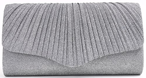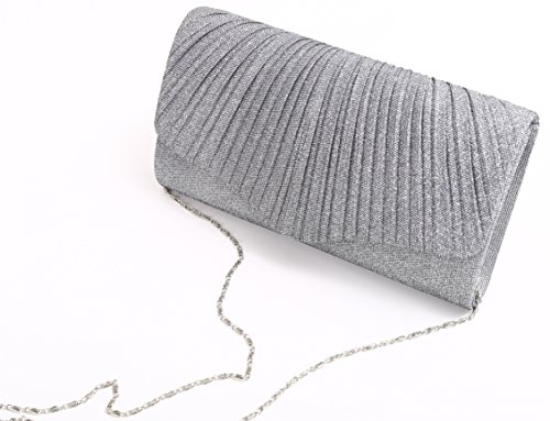 -. Title : Pulama Womens Glitter Clutch Pleated Purse for Bridal Wedding Handbag with Long Chain