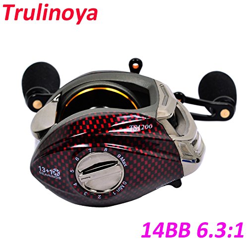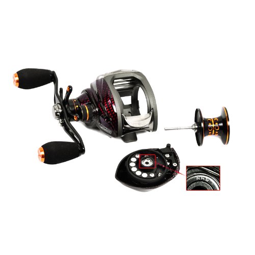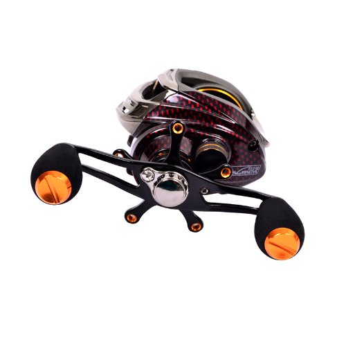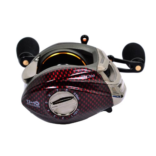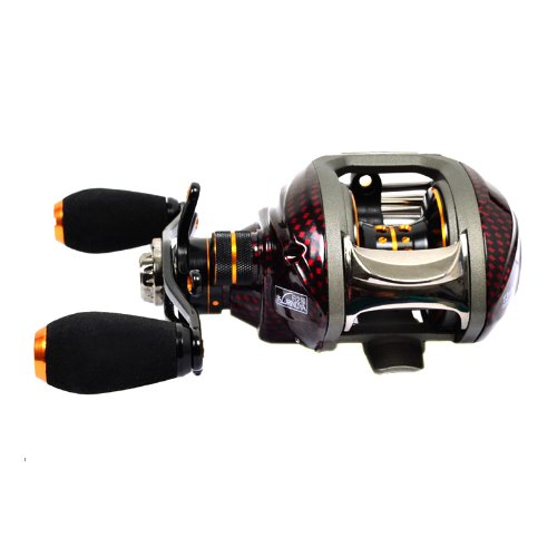 Features: This bait casting reel consists of 13 pieces of ball bearing plus one-way clutch, gear ratio up to 6.3:1. CNC machine cut aluminum spool, brass gear and graphite body. High-tensile gear, precision and low noise. Fully adjustable cast control with magnetic brake system. Excellent line lay oscillation system and unspaced anti-reverse system. Removable quick release side plate for fast spool changes. Balanced double handle with EVA knobs. Perfect tool for fishing. Note: The Red dot on the item may not look exactly the same as shown in the picture, please consider this before buying. Thanks for understanding. Specifications: Color: Red Ball bearings: 13 1 Gear ratio: 6.3:1 Max. braking force: Approx. 4kg / 8.8lb Line capacity (mm/m): 0.33/100 Line capacity (lb/yd): 12/100 Item weight: 208g / 7.3oz Package size: 14 * 11 * 7cm / 5.5 * 4.3 * 2.8in Package weight: Approx. 280g / 9.9oz Package Include: 1 * Fishing reel 0