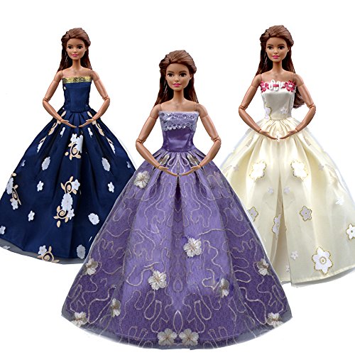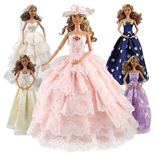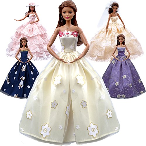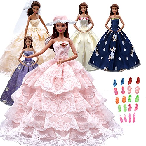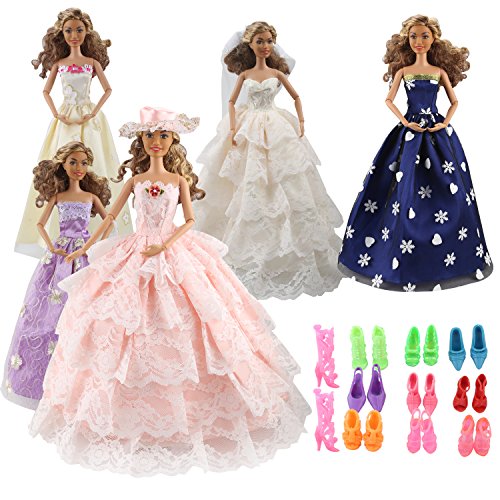 Kindly Note: The real color of the item may be slightly different from the pictures shown on website caused by many factors such as brightness of your monitor and light brightness. Quantity:5 Pack Clothes Party Gown Outfits for Barbie Doll with 10 Pairs Doll Shoes