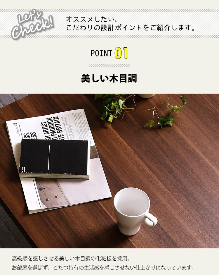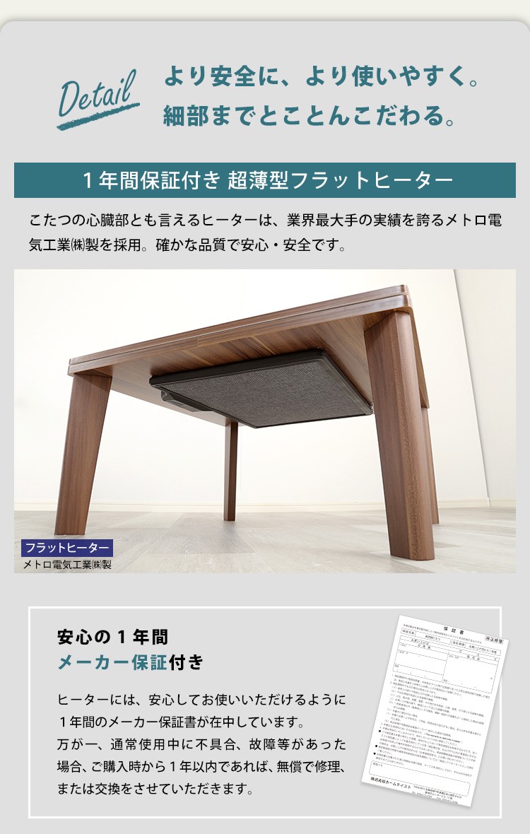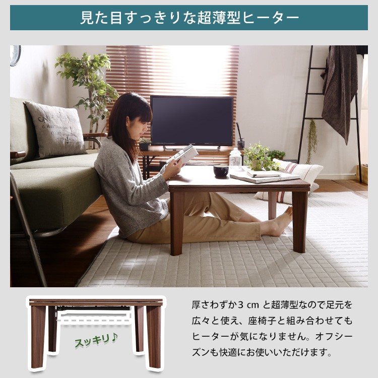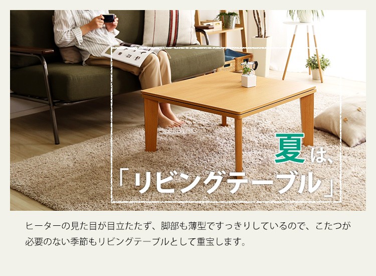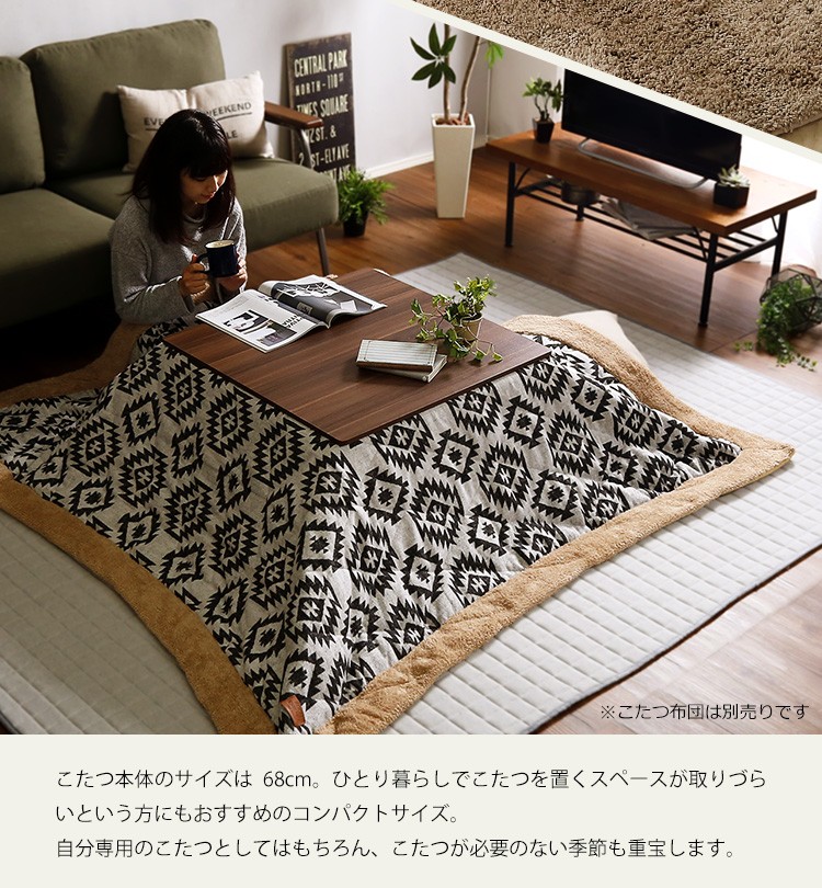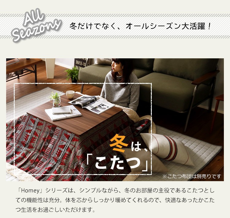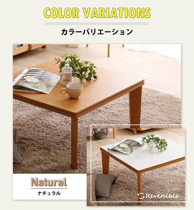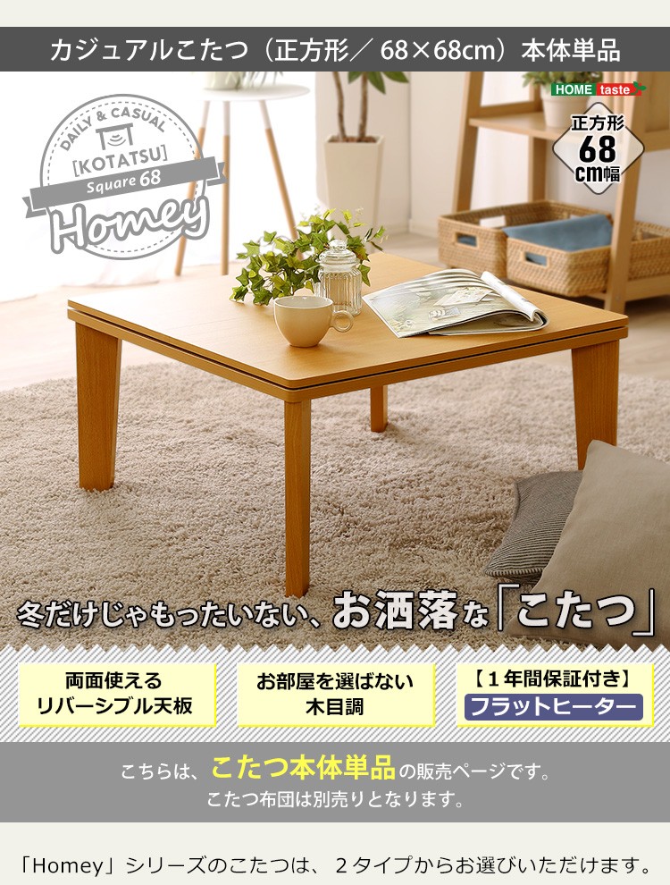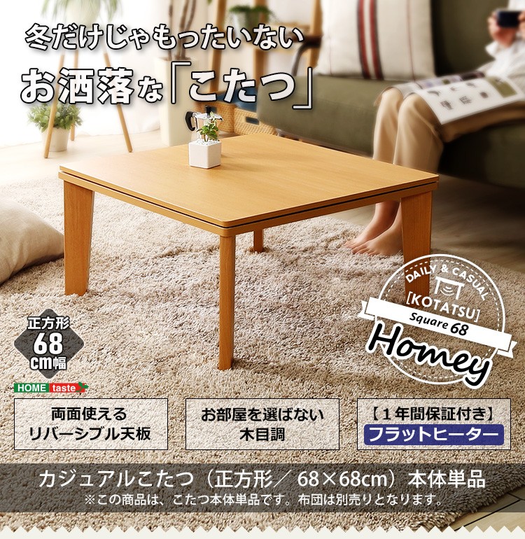 木目調 カジュアル リバーシブル こたつ フラットヒーター付 68cm幅 正方形 単品【Homey-ホーミー -】シリーズ [SQUARE68]
