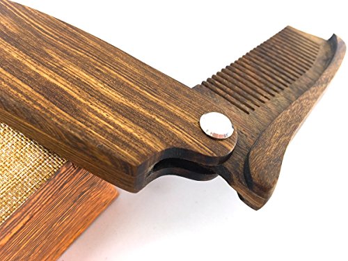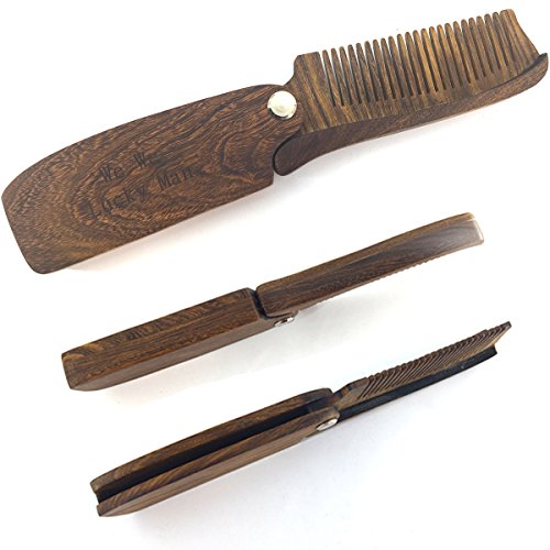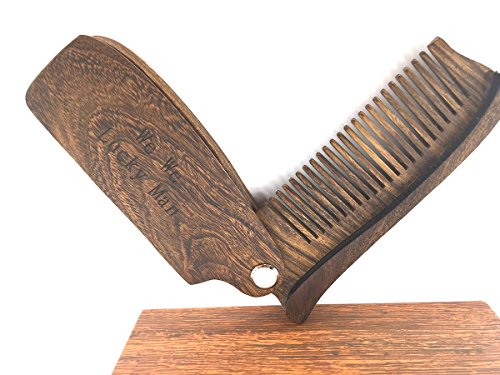 Hair & Beard Folding Sandal Wood Comb by We We, Anti-Static Wooden Styling Comb for Men (Style 01)