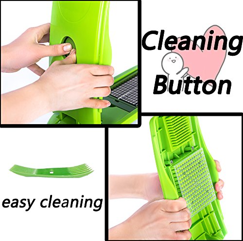 CONVENIENT CLEANING - All done and ready to clean, easy to hand wash just rinse under the tap and drip dry, and dishwasher safe.Each item rinsed clean and is ready for another use.If there has some vegetable remained in the groove you can press the button at the top of the lid to push the plastic mesh out to push out the remaining .You can use FORK to dig out the remains in the groove.