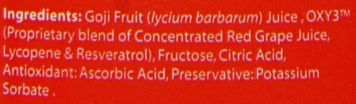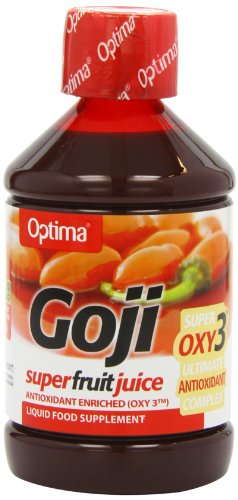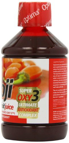 - Feature : Liquid food supplement with antioxidant activity / New goji and oxy3 juice is a complex of healthy substances / Combat free radicals responsible for premature ageing / Regulate plasma cholesterol levels within a balanced diet and to boost natural organic defences / Suitable for vegetarians and vegans