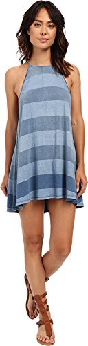 Product DescriptionIndigo high neck knit dress with printed stripe and bleach fade wash.0