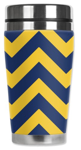 Mugzie Yellow Chevron Travel Mug with Insulated Wetsuit Cover, Multicolor