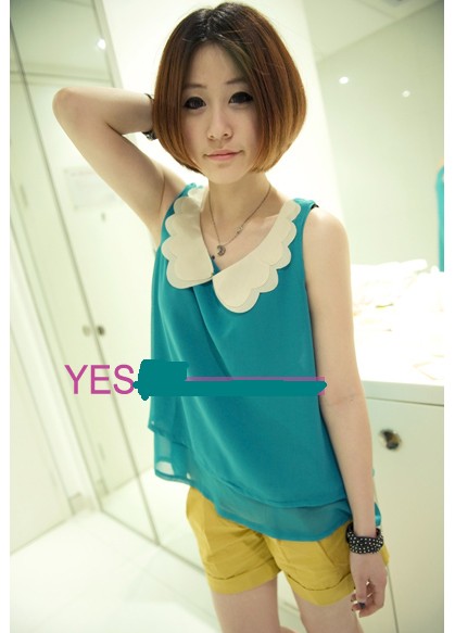 Scallop Collar Chiffon Sleeveless T-Shirt $14.00