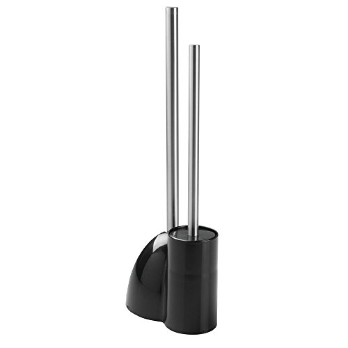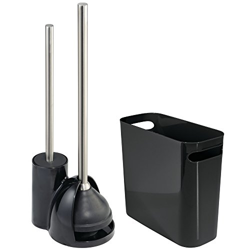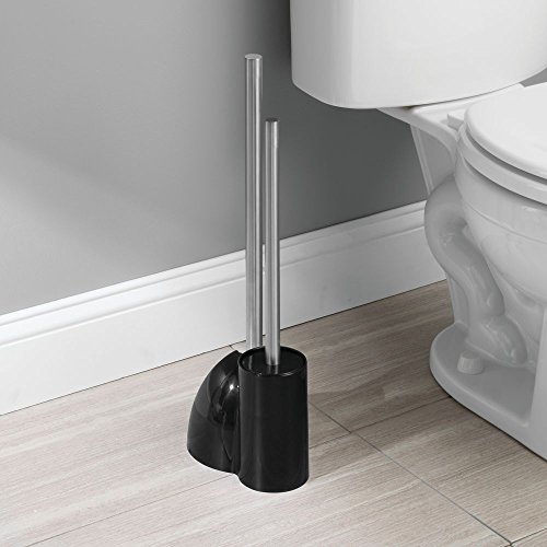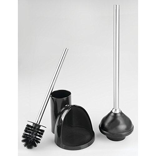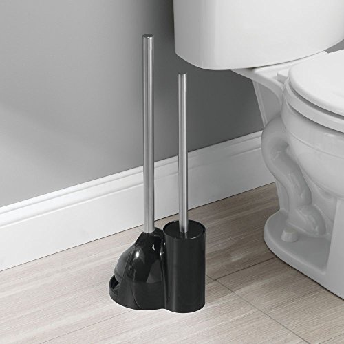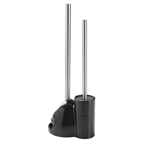 InterDesign Toilet Bowl Brush and Plunger Set - Bathroom Cleaning Storage, Black/Brushed Stainless Steel