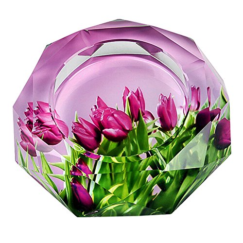 -. Title : Creative Home Decor Crystal Ashtray Glass Ashtray Glass Ash Tray Purple Flower