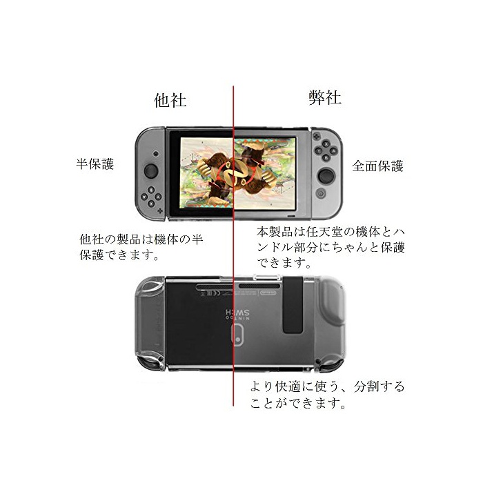 【전면 보호】 PC인 재질로 만들어져 가벼워 가지기 쉽고 편리합니다.투명성,내충격성,안정성 등이 뛰어난 것이 특징입니다.만일 본체를 떨어뜨려 버린 시 케이스가 충격을 흡수 하므로,Nintendo Switch를 제대로 보호 합니다.