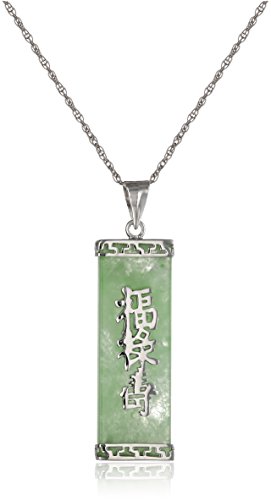 -. Title : Rhodium-Plated Sterling Silver Green Jade "Good Fortune, Prosperity, and Longevity" Pendant Necklace