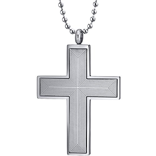 -. Title : Immaculate Elegance: Engraved Line Pattern Stainless Steel Unisex Cross Pendant Necklace