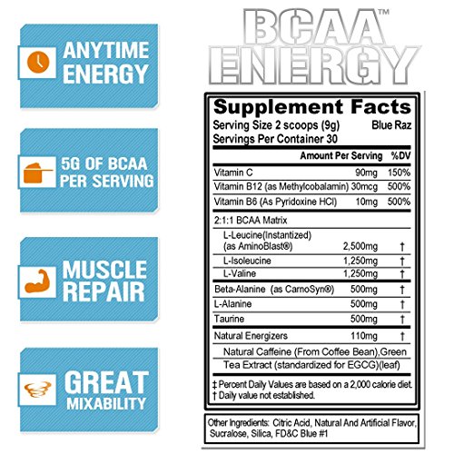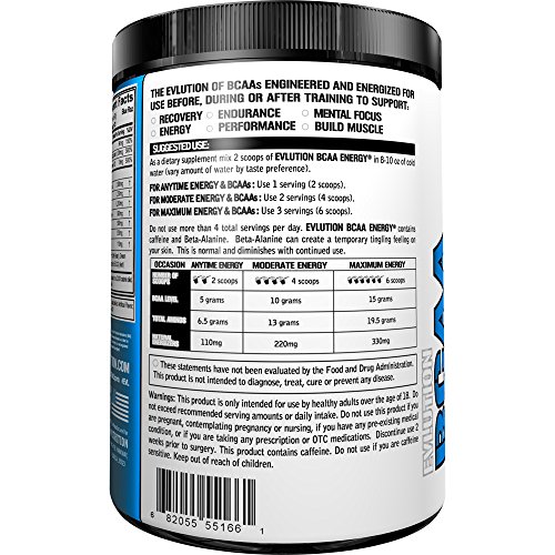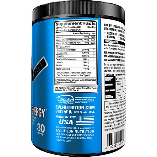 Evlution Nutrition BCAA Energy - High Performance, Energizing Amino Acid Supplement for Muscle Building, Recovery, and Endurance (30 Servings)...