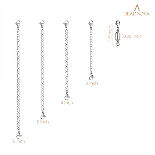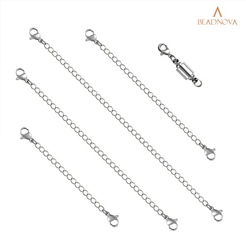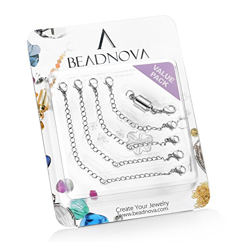 - NICE & SAFE PACKAGE: Come with 4PCS Necklace Bracelet Extenders (1pc / Size) + 1PC Magnetic Clever Clasp with our own brand "BEADNOVA" designed unique packing, Varieties Choices for All Your Necklaces and Bracelets Extending Needs, Economical Price and Worth Purchasing.