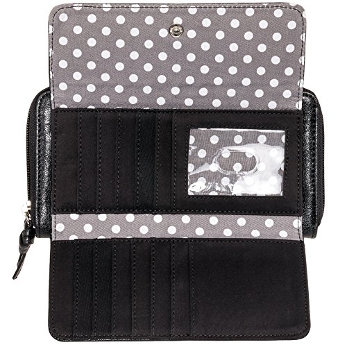 Front flap features 12 credit card slots, 2 slip pockets, and an ID window w/ thumb glide