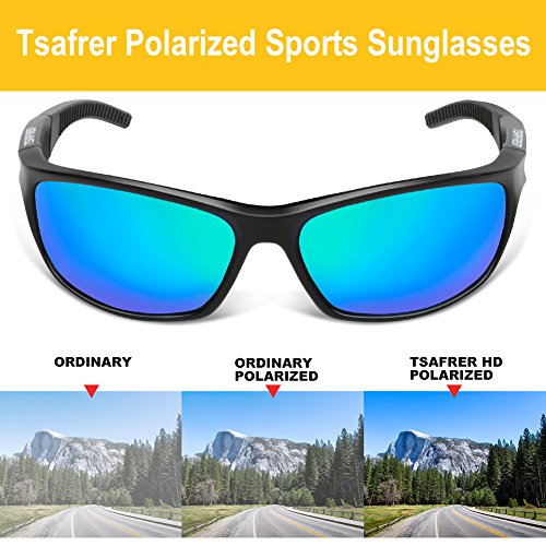 -. Feature : Our products have been sold on France for 15 years. We step into US on 2017. Tsafrer is proud of its safe lenses and true RV technology. Tsafrer ultra lightweight sports sunglasses will protect your eyes on crucial moment and reduce 85% accidents caused by strong light. It is an ideal sunglasses for outdoor hiking, cycling, driving, fishing and so on / UV Protection and Stylish: All Tsafrer sunglasses lenses are UV400, protecting your eyes from harmful UVA & UVB Rays totally. The lenses are polarized lenses against strong sunlight. The polarized sports sunglasses is perfect for men and women / True RV Lenses: We promised all the materials we used are the best! Our lenses are manufactured with premium lens, which restores the no-glare real world to you, help reduce eye fatigue and ensures your eyes' safety of all kinds of outdoor activities. Our sunglasses is impact and scratch resistant / Unbreakable, Durable, Flexible and Comfortable Frame: Our sunglasses frame is constructed with highest quality TR90 materials which is ultra lightweight and anti-shock. You can wear it when you are engaged in all kinds of outdoor recreation, sporting or other activities / Best Gift Options: Tsafrer sunglasses are the best choice if your family, lover, or friends are a outdoor activities enthusiast, a fishing lover, a driver, an athletes and more. The premium choice and a great present for Birthday, Xmas, Valentines' Day, Mother' Day, Father' Day, Thanksgiving day, Anniversaries and other festivals. ATTENTION! Hoicmoic is the only agent of Tsafrer sunglasses. Please Choose Item that Sold By Hoicmoic and Don't be Scammed by the Unreasonably Low price Temptation
