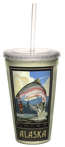 Tree-Free Greetings cc33110 Vintage Alaska Jumping Trout by Paul A. Lanquist Artful Traveler Double-Walled Cool Cup with Reusable Straw, 16-Ounce