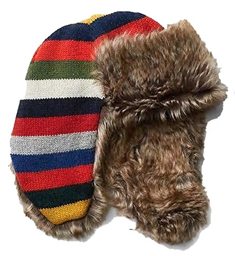 Binding : Apparel Product Description Gap Kids Crazy Stripe Trapper Hat - Crazy stripes in 13 bright bold hues, soft cotton-nylon-wool blend sweater knit, warm Pro Fleece lining at crown, faux fur trim at brim, ear flaps, allover bright stripes. Shell: 60% cotton / 30% nylon / 10% wool. Faux Fur: 78% acrylic / 22% polyester. Lining: 100% polyester. Size: L/XL 0