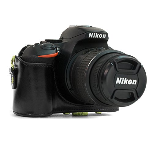 MegaGear Ever Ready Schutzender Schwarzer Lederner Kamera-Kasten, Beutel fur Nikon D5300 Cameras with 18-55mm 18-135mm 18-200mm Linse