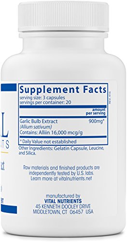 -. Title : Vital Nutrients - Garlic Extract 300 mg - Cardiovascular, Immune, and Cholesterol Level Support - 60 Capsules