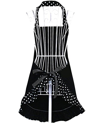 Hyzrz Cute Girls Bowknot Funny Aprons Lady's Kitchen Restaurant Women's Cake Apron with Pocket (Black)
