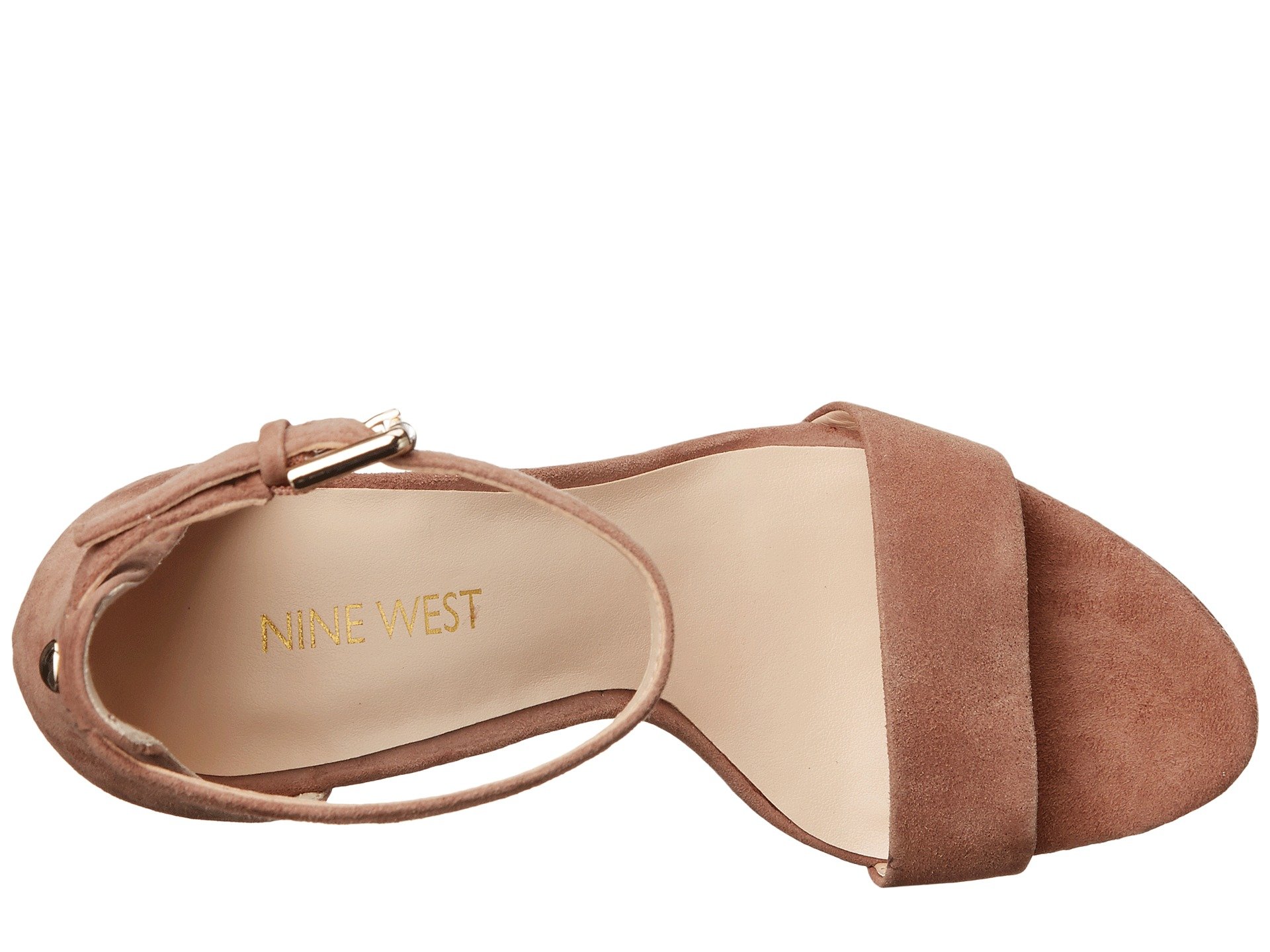 | Product Information SKU: #8680052Grab their eye with a glimmer from the gorgeous Nine West? Mana sandal! Available in a variety of uppers.Ankle strap with buckle closure.Open toe.Man-made lining.Lightly cushioned foot bed.Stiletto heel.Man-made outsole.Imported.Product measurements were taken using size 9, width M. Please note that measurements may vary by size.Weight of footwear is based on a single item, not a pair.Measurements: Heel Height: 4 in Weight: 7 oz |