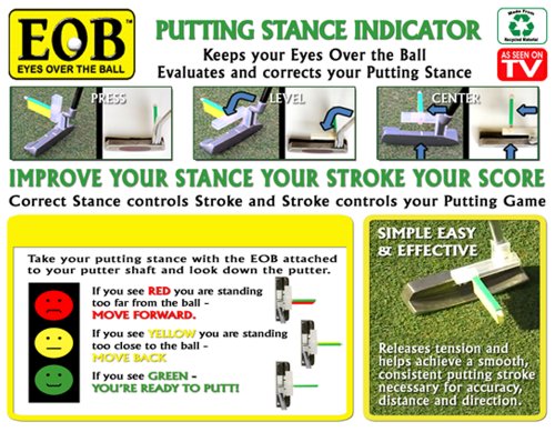 Use EOB on a practice green, the backyard or even in your home or office. All you need is a putter - you don't even need a ball. EOB helps position arms, eyes and hands correctly while it teaches you proper shoulder movement through your stroke.Feature