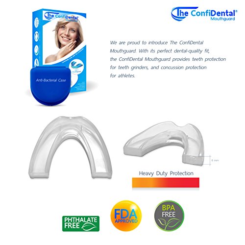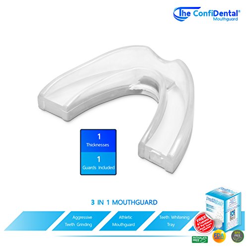 Studio : The ConfiDental Publisher : The ConfiDental Binding : Misc. Product Description The ConfiDental Dental Guard, Moldable Dental Protectors - Pack of 1 The ConfiDental Dental Guard is an excellent dental appliance made from high-quality premium dental grade materials. The guard is BPA-free and Phthalate-Free for added protection. Available in 6mm thicknesses so that it can get used for multiple purposes. Our ConfiDental Dental Guards are ideal for teeth clenching, mild to moderate teeth grinding, aggressive teeth grinding, bruxism. Additionally, they can be used as athletic guard and teeth whitening tray. The ConfiDental Dental Guard is a superior product that offers users a variety of key benefits: - Teeth Protection - The ConfiDental Dental Guard, absorbs and redistributes the force of an impact from teeth grinding and sporting activities, preventing damage to your teeth. - Customizable Fit - Made from a thermoplastic material, users can custom mold their guard for a perfect fit in the privacy of their home. - Maximum Comfort - The ConfiDental Dental Guard features a frenulum notch design that prevents irritation. - Tear Resistant and Durable - Easy to Clean and Reusable - Safe to Use - They are manufactured using BPA free and Phthalates free premium grade moldable material, for added safety and customer satisfaction. 6 Free Cleansing Tablets from Purifident: Protect Your Investment in the ConfiDental Dental Guard. Purifident Dental Appliance Cleansing and Deodorizing tablets are optimal for daily, effortless cleaning. Package Includes: - 1 pieces of 6mm thick ConfiDental Dental Guards - 6 cleansing tablets from Purifident - 1 Travel Hygiene Case - Step-by-step instructions for the molding and fitting process