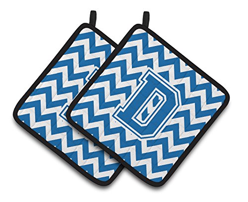 Caroline's Treasures Letter D Chevron Blue & White Pair of Pot Holders CJ1056-DPTHD, 7.5HX7.5W, Multicolor
