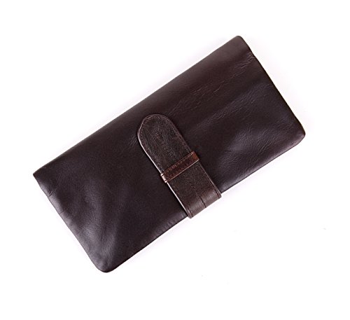 -. Feature : Material: Selected Genuine Leather / Size:7.5 x3.5 x0.8 inch / Design and Structure: Exquisite structure and elaborately design, refined workmanship, designed based on convenient and practical daily use. Clusure with belt, with 5 card pockets, 1 large cash pocket, 1 large zipper pocket, 1 transparent phone pocket, 1 small coin purse with button closure. / Style: Making old, rusty feel vintage style / Quality Assurance:NO imitation leather,NO PU,NO synthetic, NO composition leather. 100% Natural Leather. Very soft touch Excellent gloss.Durable and feel better when use longer.