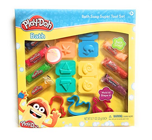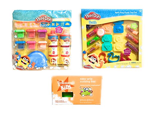 Includes: two large play-doh soap sets and one kids sudzing soap bar for easy cleanup!