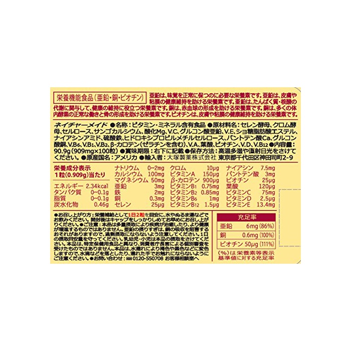 원본상품명: 大塚製? ネイチャ?メイド マルチビタミン&ミネラル 100粒