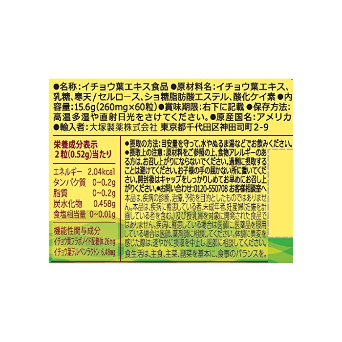 원본상품명: 大塚製? ネイチャ?メイド イチョウ葉 60粒 [機能性表示食品]