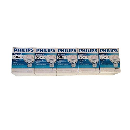 Philips Halogen Light Bulbs, Dimmable 50w Mr16 12v Gu5.3 (Pack of 5)