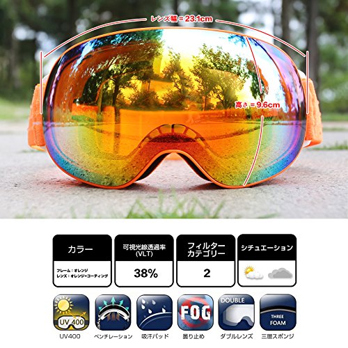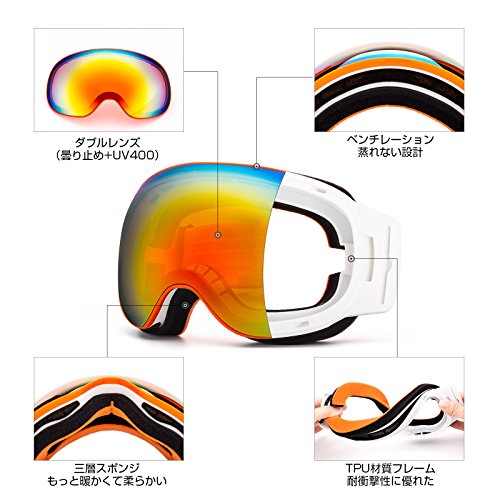 고글 UV컷 흐림금지 안경 대응 스키 스노보드 구면 렌즈 더블 렌즈 등산 서바이벌 오렌지 601O