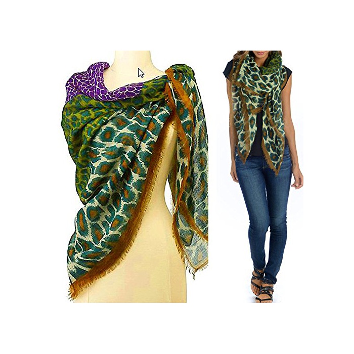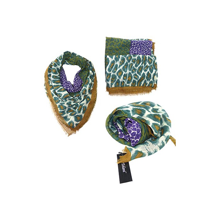 (토라《니》) TOLANI 레오 파 드무늬 실크 울 스톨/정방형 스카프/숄 [병행수입품]