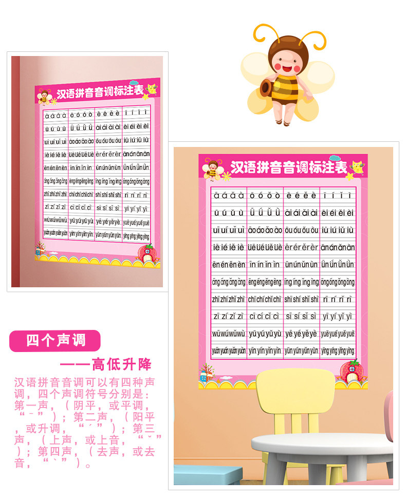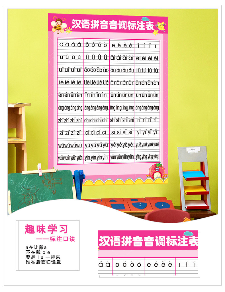 教室布置墙贴小学初中学校墙面墙壁自粘墙纸画汉语拼音音调标注表