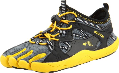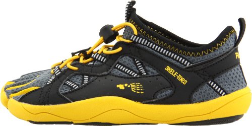 The Bay Runner is a must-have for any Skele-toes fan! - EZ Slide feature combines two smallest toes for ease of entry. Bungee/toggle lace system for custom fit. Lightweight overlays with webbing straps for comfort. Lightweight EVA midsole. Skele-toes outsole graphic. Textile / synthetic.
