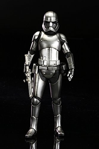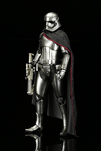 リーズナブルで集めやすいサイズ。スター・ウォーズフィギュアの新スタンダード。「スター・ウォーズ/フォースの覚醒」からファースト・オーダーを率いる将校、キャプテン・ファズマが登場! 『スター・ウォーズ/フォースの覚醒』から「ARTFX+ ファースト・オーダー ストームトルーパー 2パック」に続き、あの銀色のアーマーを着た「キャプテン・ファズマ」が発売決定!特徴的なドレープの付いたマントから覗く銀色の鎧は、メッキを使って再現。また、腕の差し替えで銃を構えたポーズと下したポーズ2通りの展示が可能です。 商品は塗装済みの簡易組み立てキットなので開けてすぐに飾れます。足裏にはマグネットが入っており、鉄板入りのスクエア台座を使って自由度の高いディスプレイをお楽しみいただけます。Feature