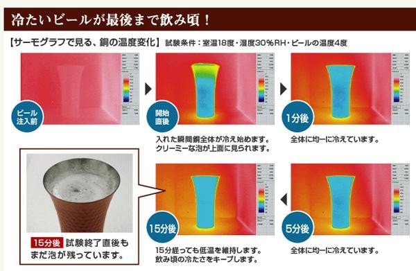 | 銅カップを使用して冷たい飲み物を飲むと、口当たりや手に伝わる清涼感は格別です。銅イオンの働きで、カップを衛生的に保ちます。 |