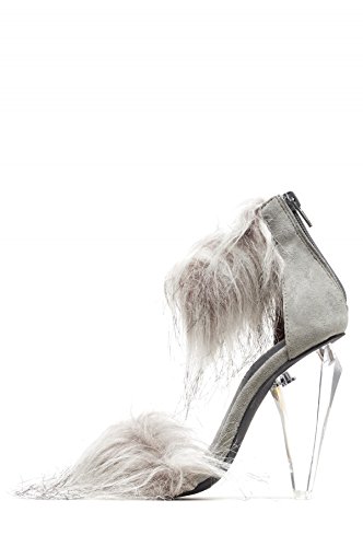(Jeffrey Campbell)/Women's/Sandals/DIRECT FROM USA/Jeffrey Campbell Fancy-F Grey Suede Combo Fur Geometric Glass Heel Sandal Heels