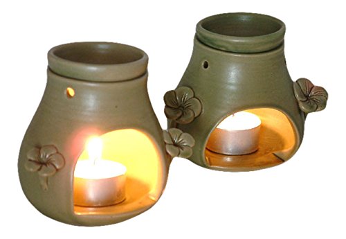 NOVICA Floral Ceramic Incense Holder, Green 'Frangipani Dreams' (pair)