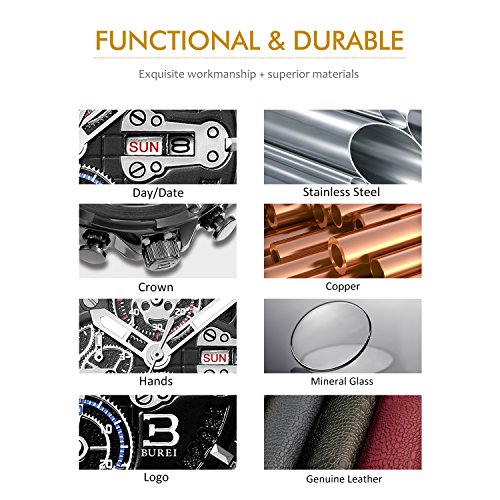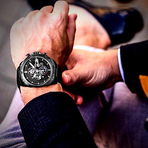-. Feature : 夜光指針、プランド名、日曜日付表示窓口と三つの小さな文字盤を飾りのブラック.ホワイト文字盤シンプルなデザインです。 / 日本純正クォーツのムーブメントを採用し、日曜日付表示機能も付き、時間がもっと正確し、クロノグラフとタキメーターも「できる男」っぽいイメージを演出しているようです。 / カラーバリエーションなベルトが、キラキラして、まるでブレスレット風なように。 / 防水166フィート(50メートル)日常生活防水仕様で、耐衝撃、耐ひっかきサファイアガラス、安心なスタンダードウォッチです。 / 同梱品:本体、説明書、専用ケース、2年間品質保証カード。丁寧な梱包、自分へのご褒美としても大切な方へのギフトにも最適です。