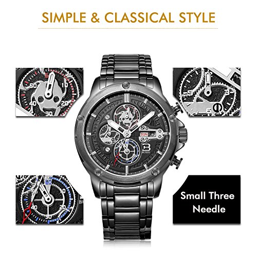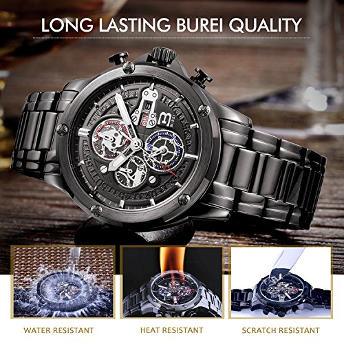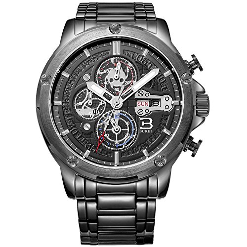 -. Title : (バオショ)BUREI 腕時計 夜光 クロノグラフ 日付 クォーツ ブラック文字盤 7009-P56EY メンズ ステンレス ブラック 日付、曜日表示 50m防水